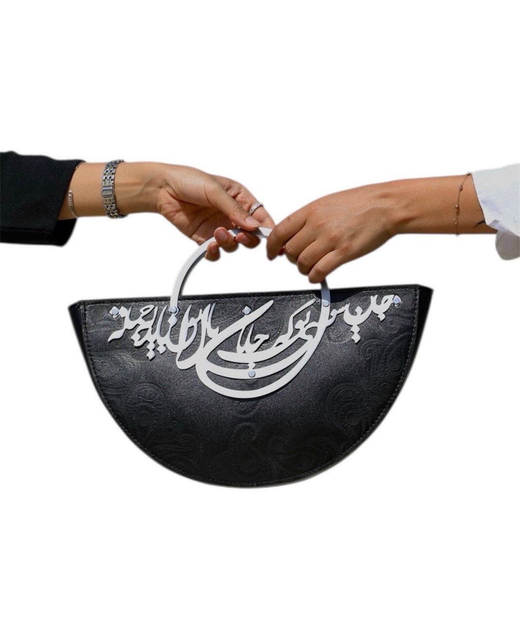 The structured silhouette offers both style and practicality, making it perfect for special occasions, cultural events, or elevating everyday outfits. The bold calligraphy design adds a meaningful artistic touch, turning this bag into a statement piece that reflects heritage and sophistication.