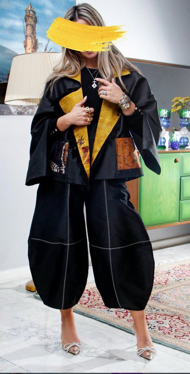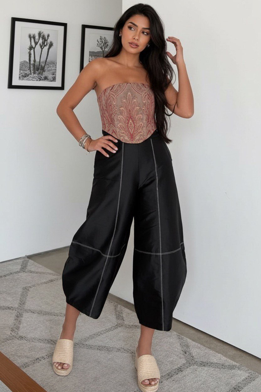 One size pants with elastic back waistband, fits U.S. sizes 4–10 (S–M).