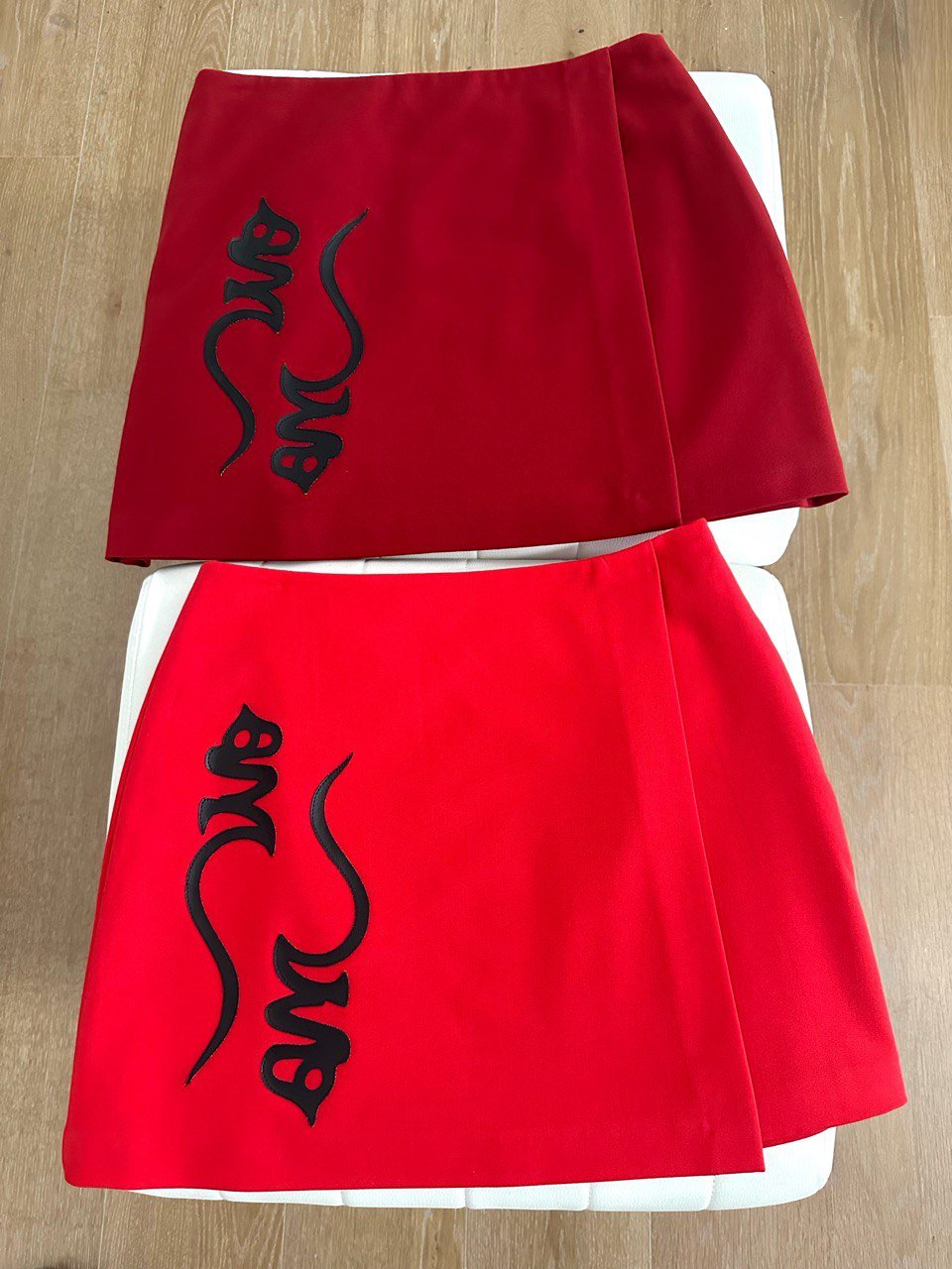 These stunning red skirts feature a bold and artistic black Persian calligraphy design that adds a touch of cultural elegance and modern sophistication. Crafted from high-quality fabric with a smooth, structured finish, each skirt offers a flattering A-line silhouette that complements a variety of body shapes.